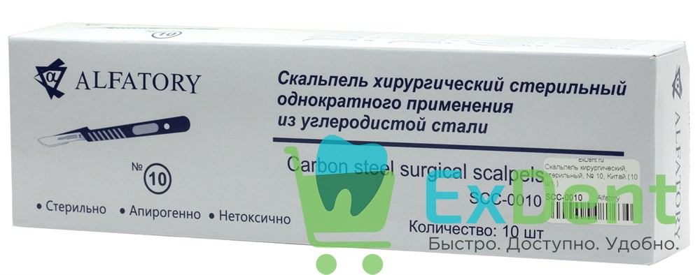 Купить Скальпель хирургический, стерильный, № 10, Китай (10 шт.) произведенный компанией Alfatory вы можете в ExDent.ru по цене 0руб.