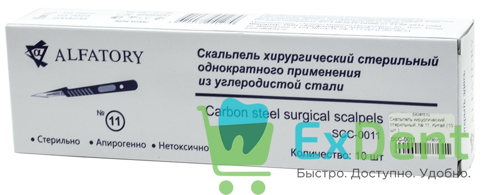 Купить Скальпель хирургический, стерильный, № 11, Китай (10 шт.) произведенный компанией Alfatory вы можете в ExDent.ru по цене 230руб.