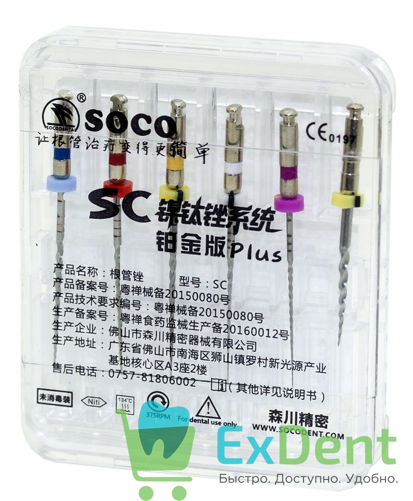 Машинные файлы с памятью формы из никель-титанового сплава для ротационного эндонаконечника Soco SC Plus - оригинальная разработка компании Soco. Основное отличие версии SC PLUS от SC заключается в изменении размера устьевика и наличии 2-х Path-файлов вместо одного.