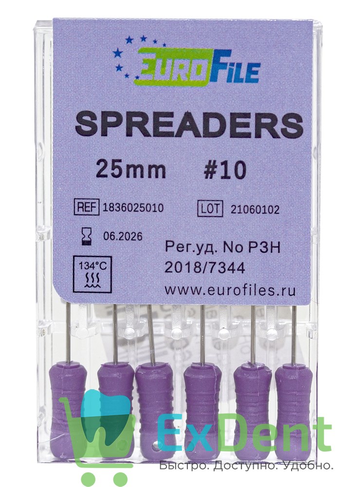Купить Spreaders (Спредер) №10, 25 мм, EuroFile, для латеральной конденсации гуттаперчи, ручные (6 шт) произведенный компанией EuroFile вы можете в ExDent.ru по цене 0руб.