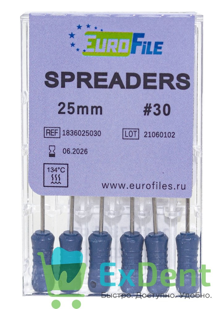 Купить Spreaders (Спредер) №30, 25 мм, EuroFile, для латеральной конденсации гуттаперчи, ручные (6 шт) произведенный компанией EuroFile вы можете в ExDent.ru по цене 0руб.
