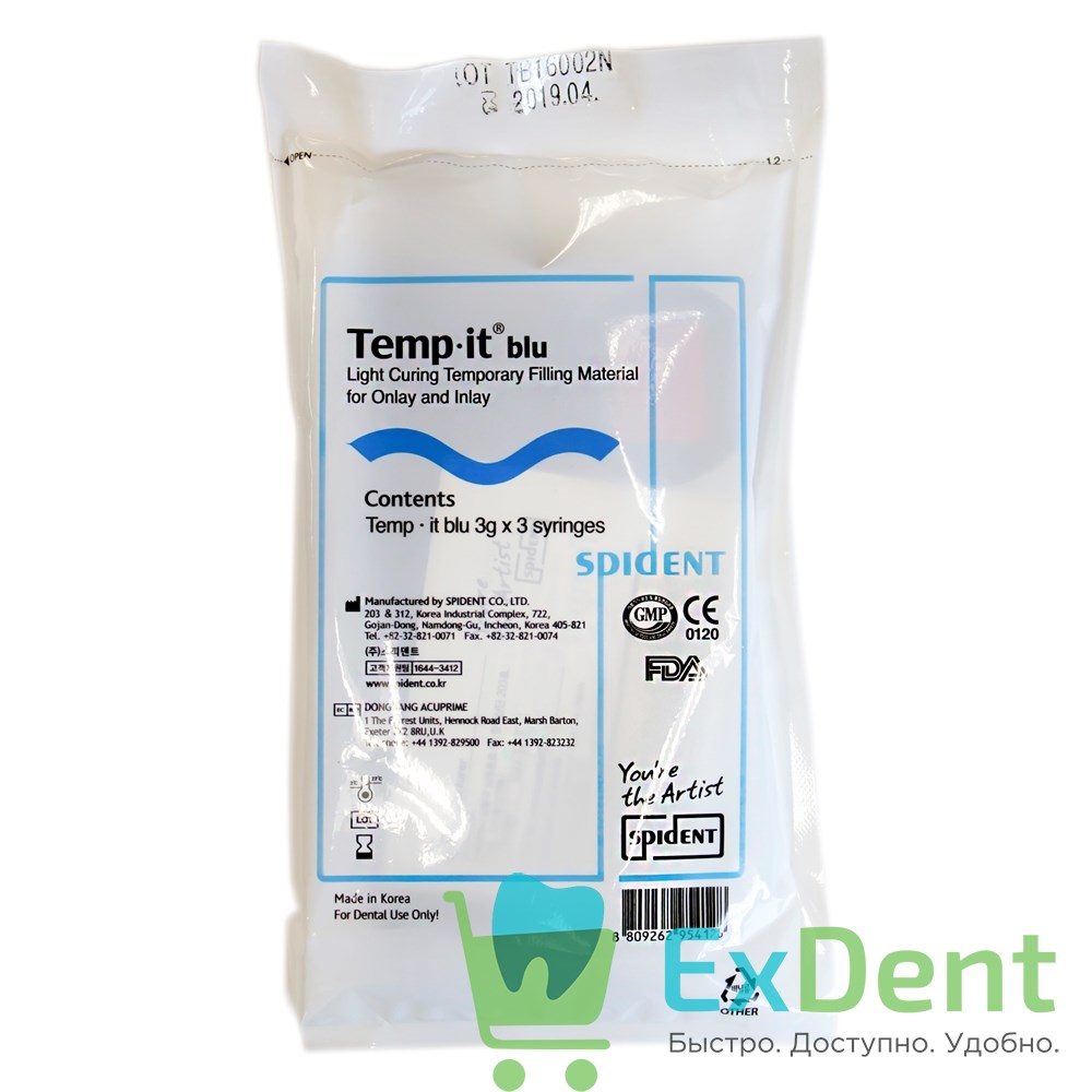 Купить Temp-It (Темпит) Blue - светоотверждаемый материал для временного пломбирования (3 х 3 г) произведенный компанией Spident вы можете в ExDent.ru по цене 2 410руб.