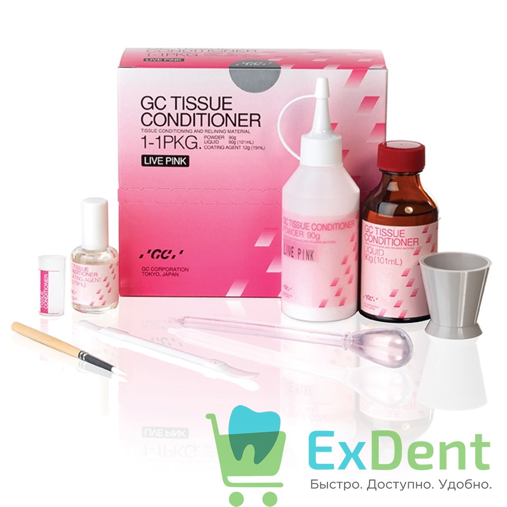 Tissue conditioner, Live Pink, кондиционер для тканей, мягкий акриловый материал 90g порошок, 101ml