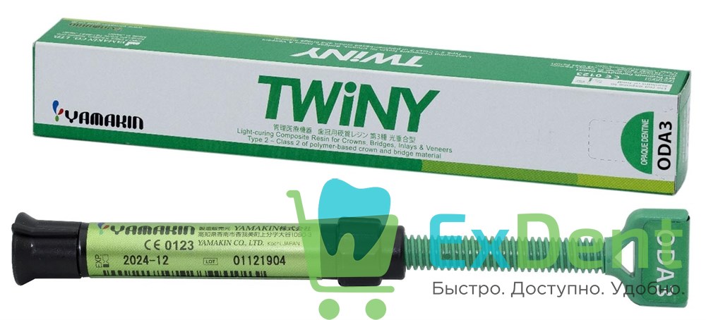 TWiNY - это свето и тепло отверждаемый, керама-кластерный композитный материал, созданный на основе нано-технологий. Используя новейшую технологию неорганического наполнителя (Керама-Кластерный наполнитель), TWiNY обеспечивает отличное сочетание прочности, простоты и эстетического вида материала. TWiNY был сертифицирован ISO 10993, Biological Evaluation of Medical Devices. Кроме того проводились исследования, используя различные тесты безопасности материала;