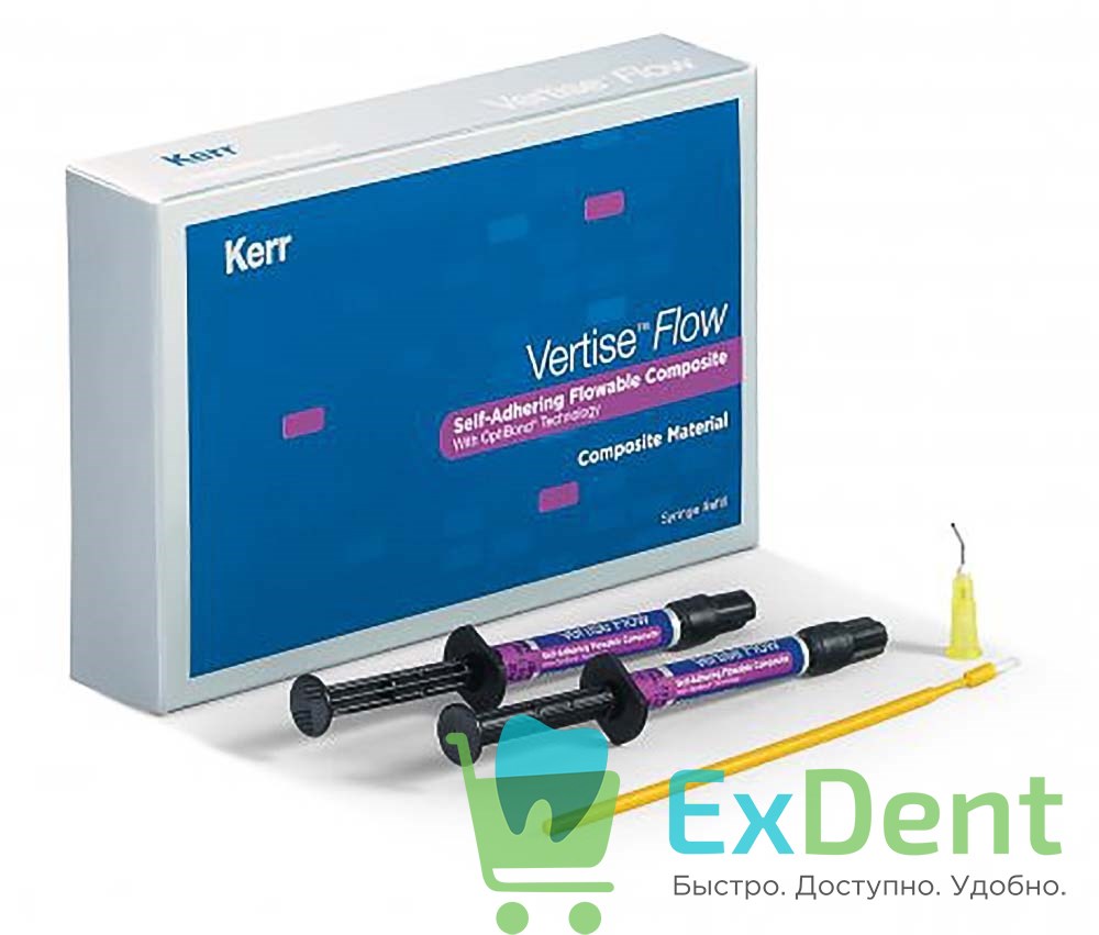 Vertise™ Flow – это самопротравливающий самоадгезивный текучий композитный материал. В составе Vertise™ Flow используется та же технология, что и в известном семействе адгезивов OptiBond™ от Kerr, благодаря чему при применении Vertise™ Flow не требуется проведение процедур протравливания / прайминга / бондинга. При этом Vertise™ Flow обеспечивает высокую силу адгезии и по прочностным характеристикам не уступает традиционным текучим композитам.