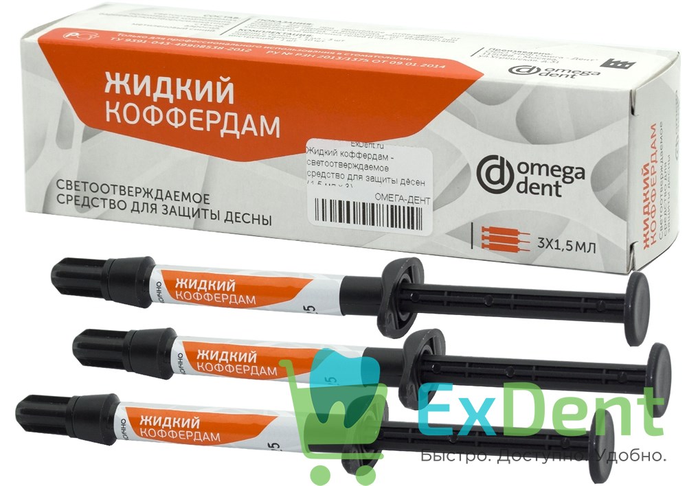 Купить Жидкий коффердам - светоотверждаемое средство для защиты дёсен (1,5 мл х 3) произведенный компанией ОМЕГА-ДЕНТ вы можете в ExDent.ru по цене 3 000руб.